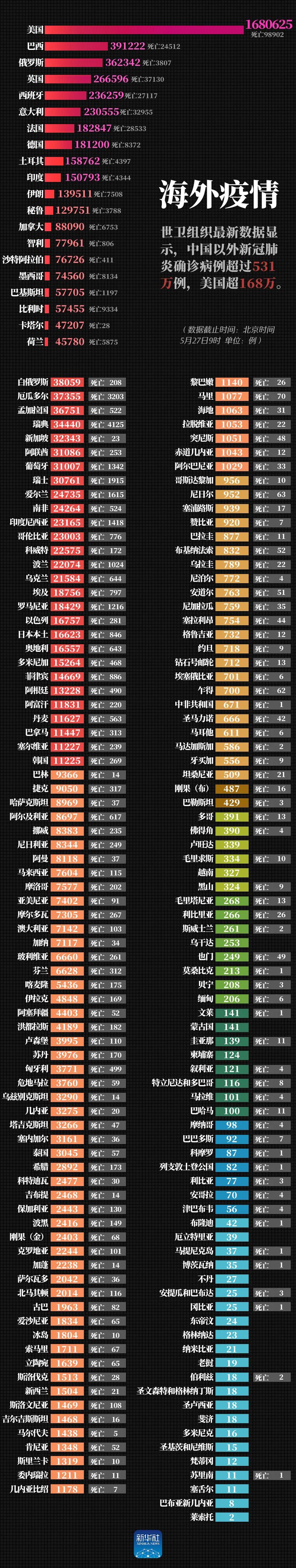 最新!美国超168万例,中国以外确诊病例超过531万例