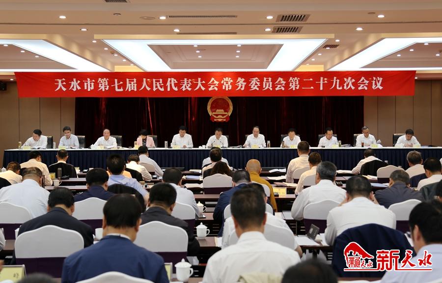 新天水讯【天水日报记者马放】5月28日,市七届人大常委会第二十九次会议召开。市人大常委会主任蒋晓强,市人大常委会副主任刘天波、杨永晖分别主持第一、二、三次全体会议。出席会议的常委会组成人员符合法定人数。