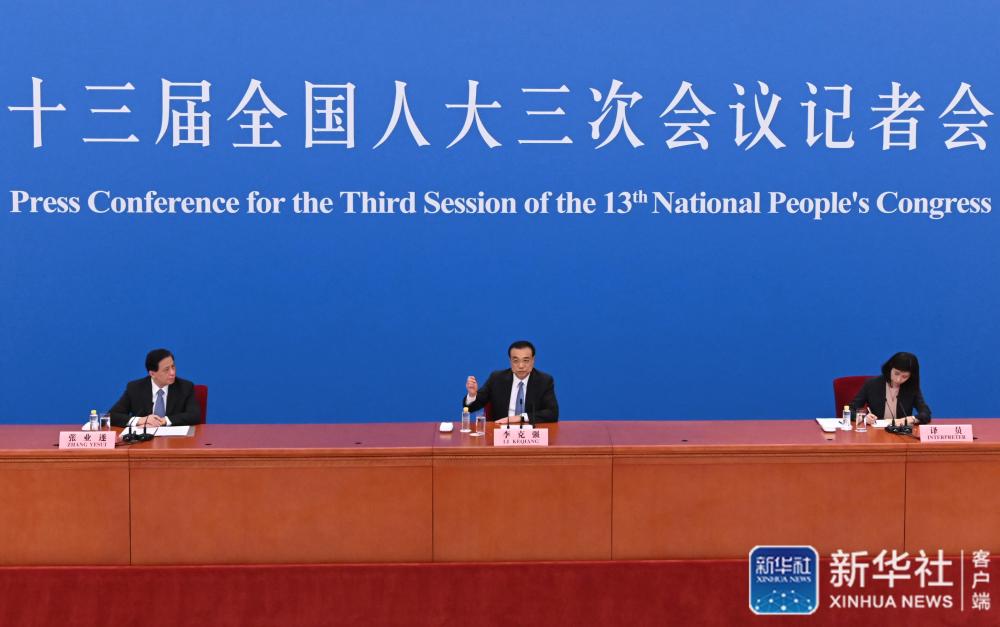 5月28日下午,十三届全国人大三次会议在北京人民大会堂举行记者会,国务院总理李克强应大会发言人张业遂的邀请出席记者会,并回答中外记者提问。新华社记者 刘卫兵 摄