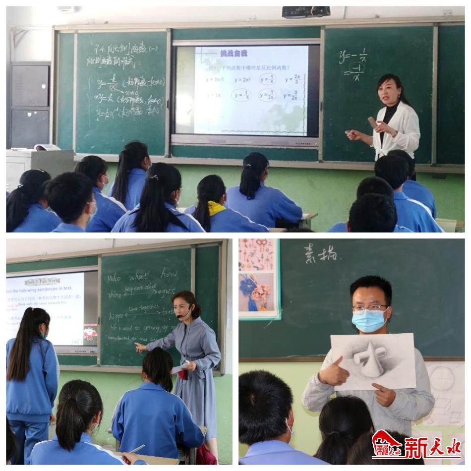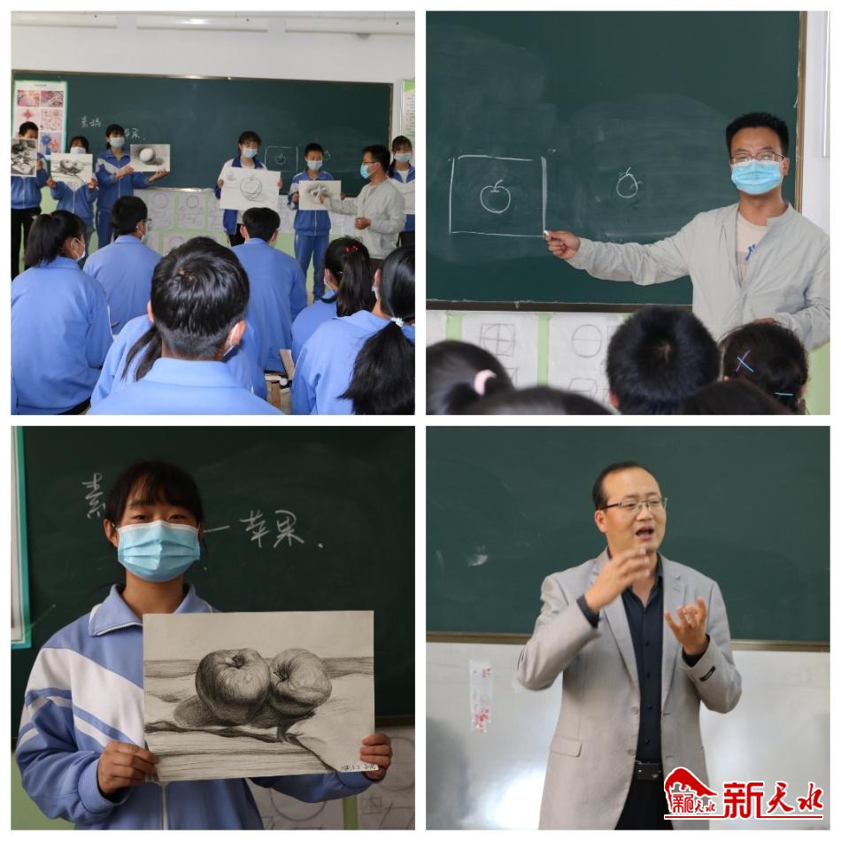 课堂上师生互动,气氛热烈。特别是该校高中艺术专业班师生的课堂,歌声悠扬、舞姿舒展,画笔生辉,同学们再次耳目一新,跃跃欲试。艺术气息的注入,让生活在这里的孩子们,目光中一一闪现灵性的光芒。