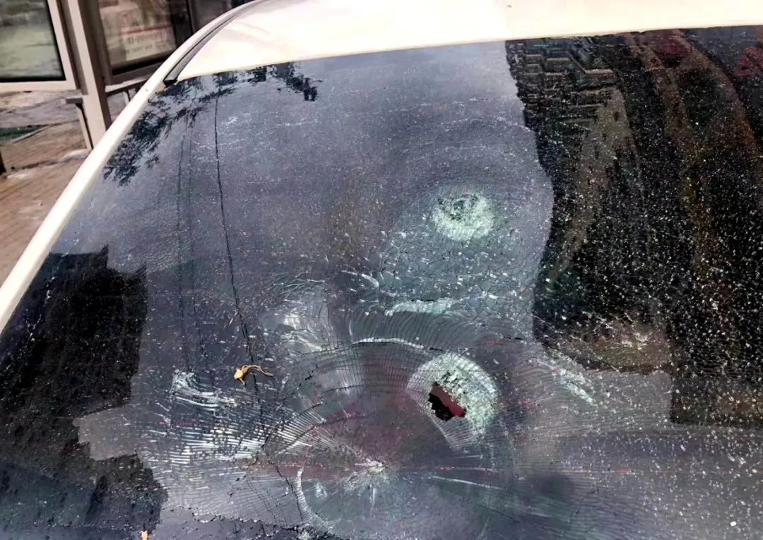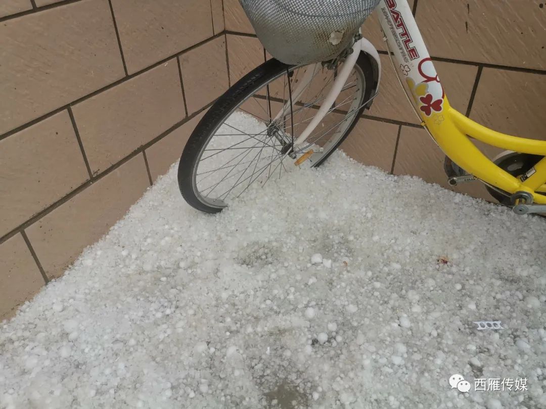 5月31日下午,会宁县城遭冰雹袭击,十几分钟时间,街道水流成河,大冰雹将车窗都砸烂: