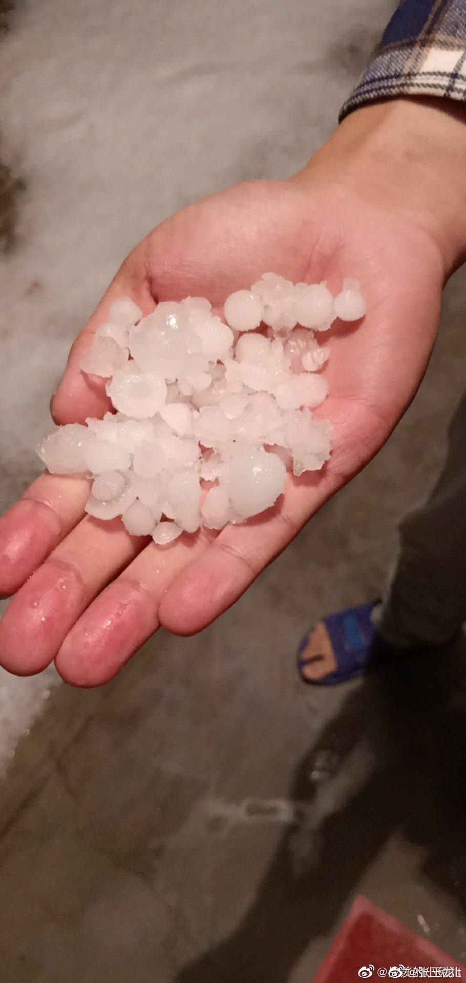5月31日上午,白银市靖远县遭遇强对流天气,北部部分乡镇下起了冰雹,最大冰雹直径10mm。