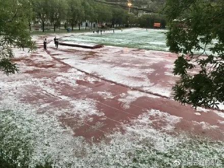 5月31日上午,白银市靖远县遭遇强对流天气,北部部分乡镇下起了冰雹,最大冰雹直径10mm。
