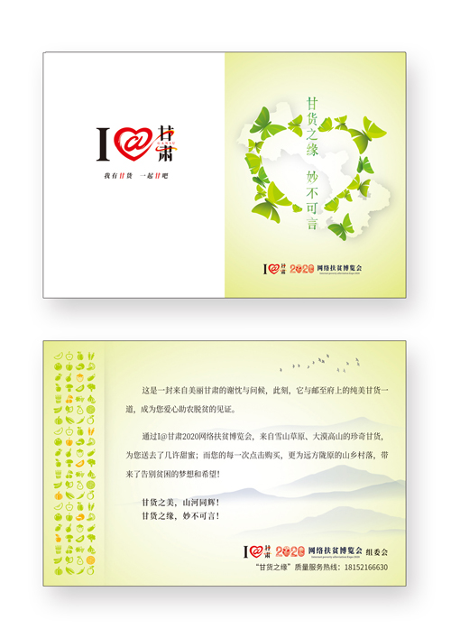 据记者了解,这是I@甘肃2020网络扶贫博览会,为“县长直播天团”网络直播带货特别定制、送给五湖四海“甘货”粉丝们的一份特殊的礼物。5月24日的甘肃“县长直播天团”带货活动,售出30余种特色“甘货”共14037单,伴随着这些鲜美的“甘货”,数万张饱含谢意的卡片,飞向黄河上下、抵达大江南北,进入北、上、广、深等地的单位和家庭,为“甘货”生产农户和消费终端之间,架设起一座心与心沟通、供与需对接的桥梁。