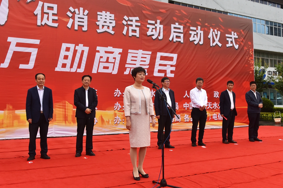 市人大常委副主任宋建平,市政协副主席郭明兴出席活动启动仪式。本次活动的主题为“百日千万·助商惠民”,旨在贯彻落实天水市关于进一步提升消费供给释放消费潜力着力扩大内需实施意见和关于进一步促进消费扩大内需行动计划的要求,促进我市消费回补、释放消费潜力,提振消费信心,促进全市经济稳定增长。活动时间为2020年6月1日-9月10日,为期100天。