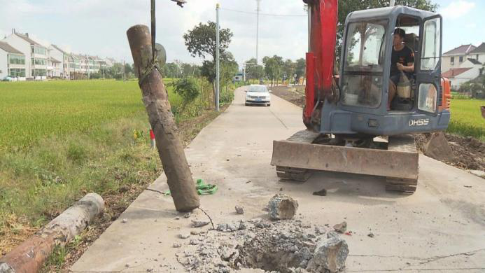 2019年10月14日,挖掘机挥舞机械手臂,横立在金山卫镇塔东路(金山-平湖交界处)两村之间的两个路桩被连根拔起,自此,金山与平湖两地边界再无“水泥墩子”挡路。
