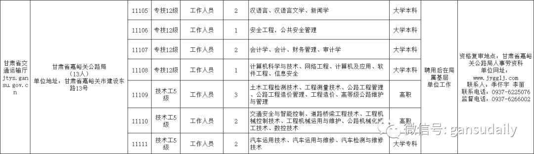 (六)本公告在甘肃省人力资源和社会保障厅、甘肃省交通运输厅网站发布。