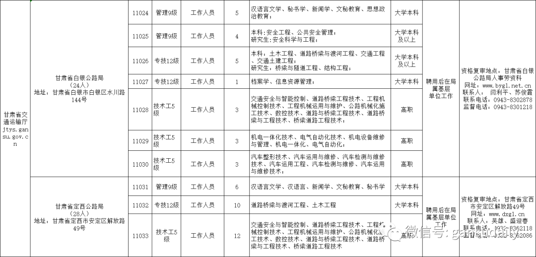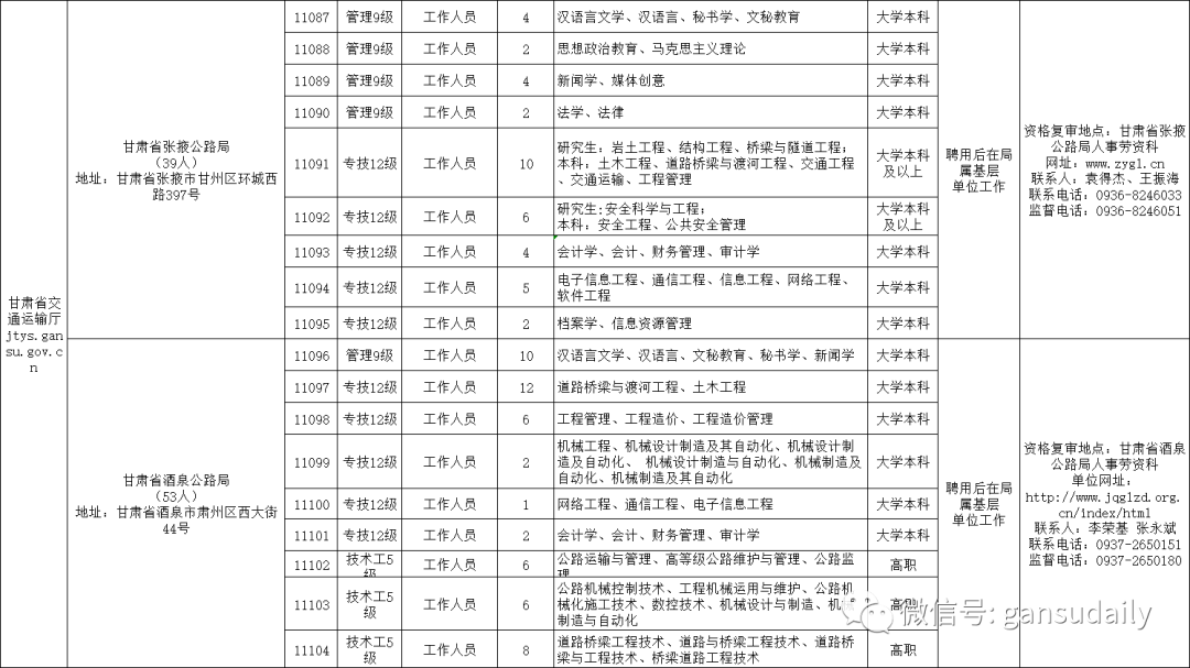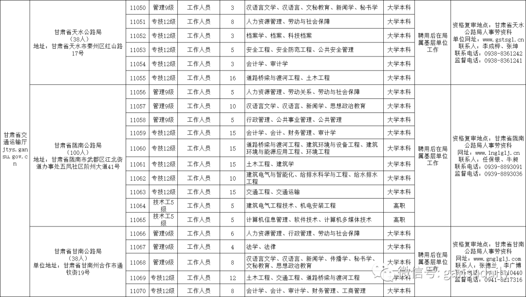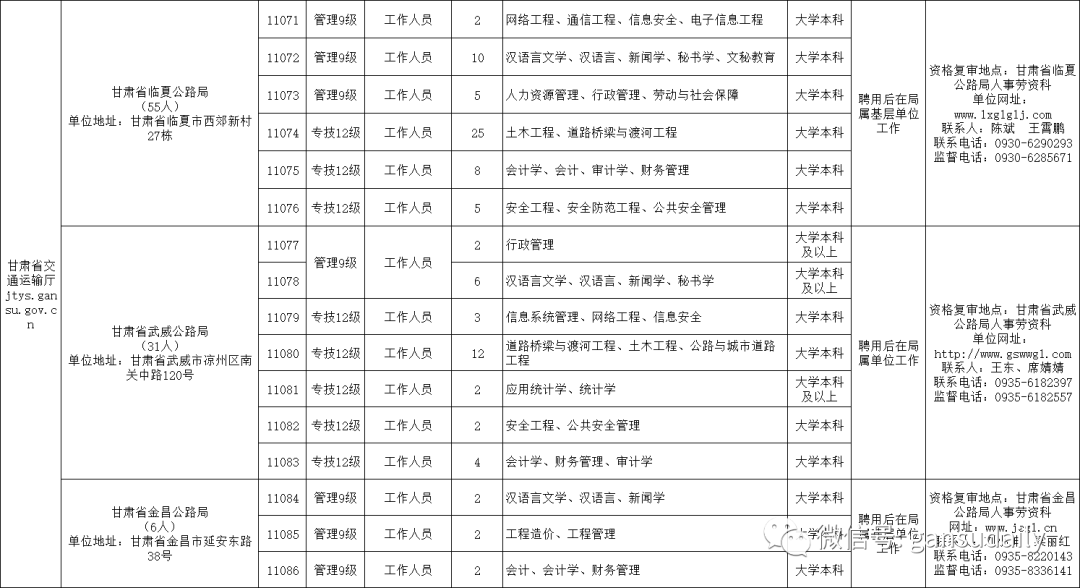 甘肃省交通运输厅人事处咨询电话:0931-8485697