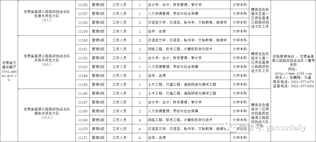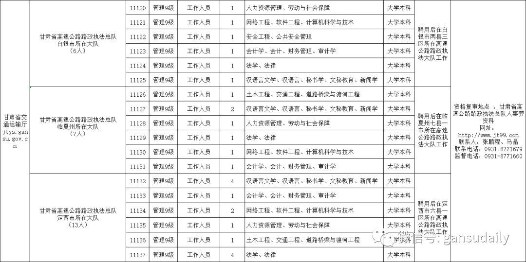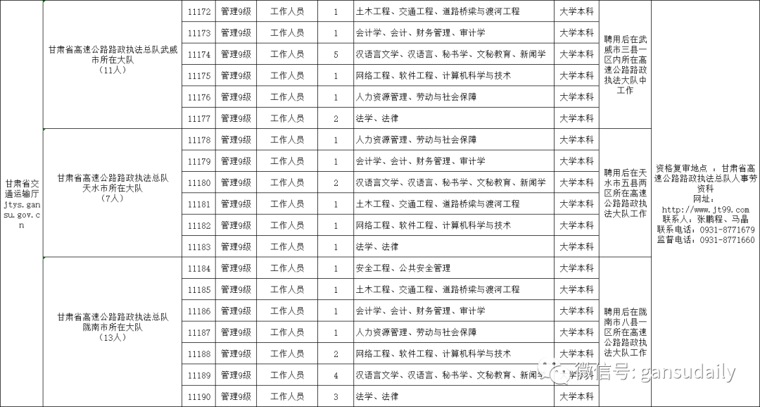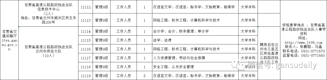 甘肃省高速公路路政执法总队人事劳资科咨询电话:0931-8771679