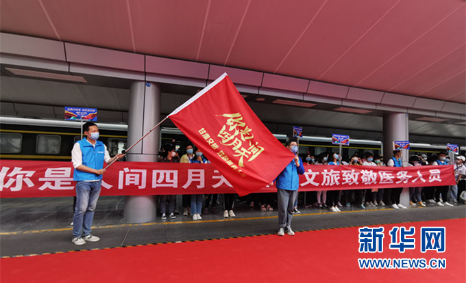 新华网兰州6月8日电(记者 郎兵兵)8日下午6时,由甘肃省文旅厅联合甘肃省委宣传部、省人社厅、省卫健委策划开展的“你是人间四月天”——甘肃文旅致敬医务人员健康休养活动正式启动。首批抗疫一线200多名医务人员乘坐“敦煌号”旅游列车,从甘肃兰州出发,前往河西五市免费健康休养。