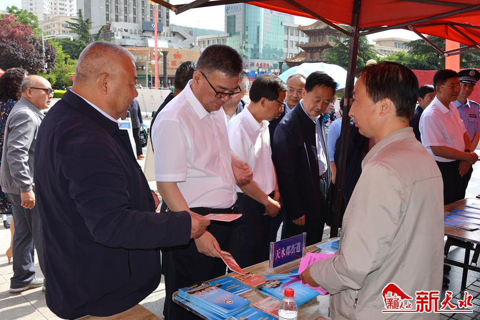 新天水讯【天水日报记者马哲】6月9日,我市在龙城广场开展《信访条例》修订实施15周年集中宣传活动。市委常委、政法委书记蒲军,市人大常委会副主任宋建平,副市长、市公安局局长马瑛出席宣传活动。