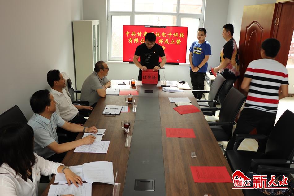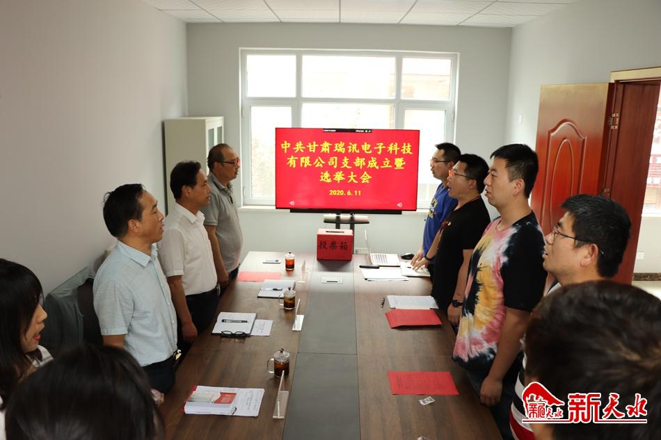 新天水讯 6月11日,甘肃瑞讯电子科技有限公司党支部成立暨选举大会召开。中共天水市委宣传部副部长、市委网信办主任、党支部书记、市互联网行业党工委书记刘越高同志以及网信办相关人员到会全程指导。