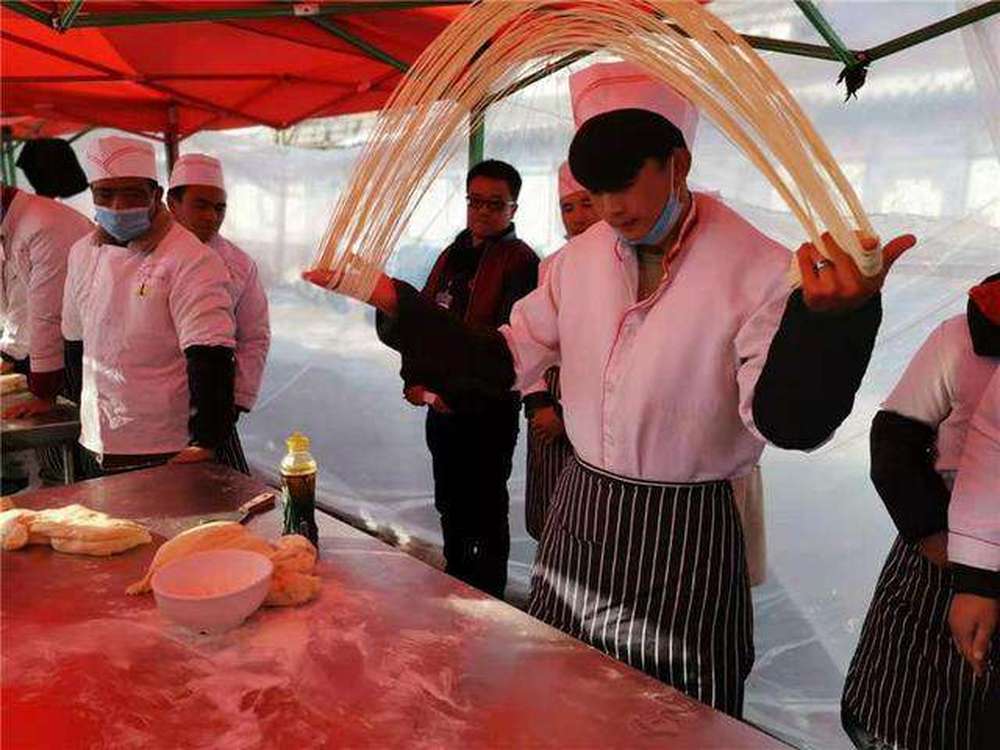 临夏县漠泥沟乡组织的拉面技能培训。(新华社记者周圆通联)