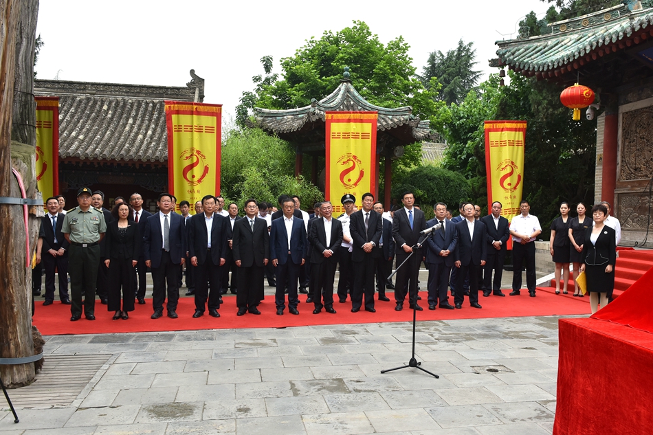 市委书记王锐,市委副书记、市长王军,市人大常委会主任蒋晓强,市政协主席赵卫东出席捐赠仪式并为“紫砂八卦如意祭器”揭彩。