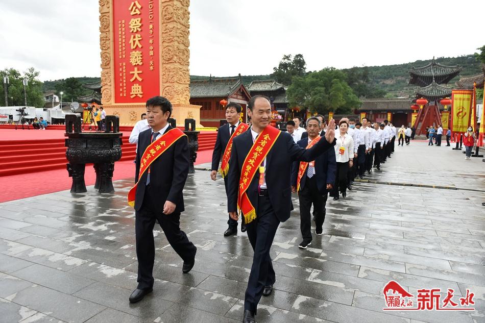 省委常委、统战部部长马廷礼,省委常委、组织部部长李元平,省委常委、宣传部部长、省公祭伏羲大典活动领导小组组长陈青,省委常委、秘书长王嘉毅,省人大常委会党组书记、副主任王玺玉,副省长、省公祭伏羲大典活动领导小组副组长何伟,省政协副主席、天水市委书记王锐,省人大常委会秘书长张建昌,省政府秘书长李志勋,省政协秘书长王建太,武警甘肃总队参谋长黄洁,天水市党政军领导王军、蒋晓强、赵卫东、宋英武等以及在甘港澳台同胞、海外侨胞代表,甘肃省抗击疫情先进集体及先进个人代表,甘肃省脱贫攻坚工作先进集体和先进个人代表,复工复产企业代表,甘肃省公祭伏羲大典活动领导小组成员单位负责人,国家、省级主要新闻媒体、港澳台重点媒体等方面代表及我市各界群众代表约300人在现场参加公祭大典。