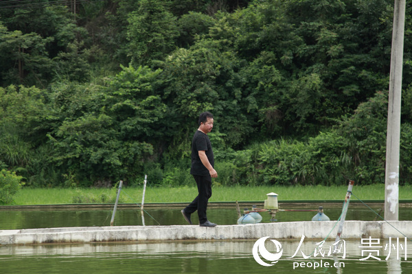 王国祥正在巡视合作社鱼塘。李宇 摄