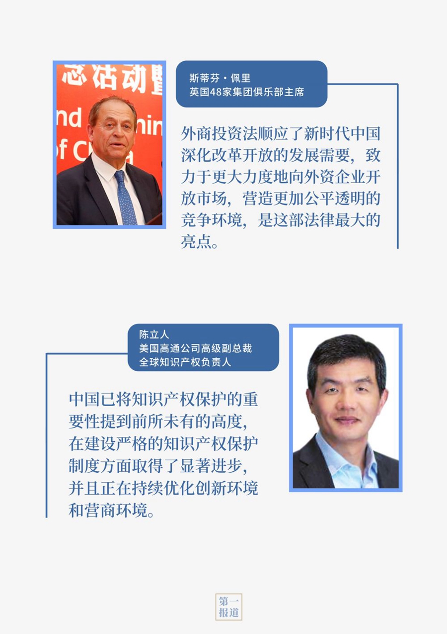 “我们将于明年1月1日实施新的外商投资法律制度,引入侵权惩罚性赔偿制度,增强民事司法保护和刑事保护力度,提高知识产权保护水平。”一年前,在二十国集团大阪峰会上,习主席就中国实施新的外商投资法律制度给出明确“时间表”。