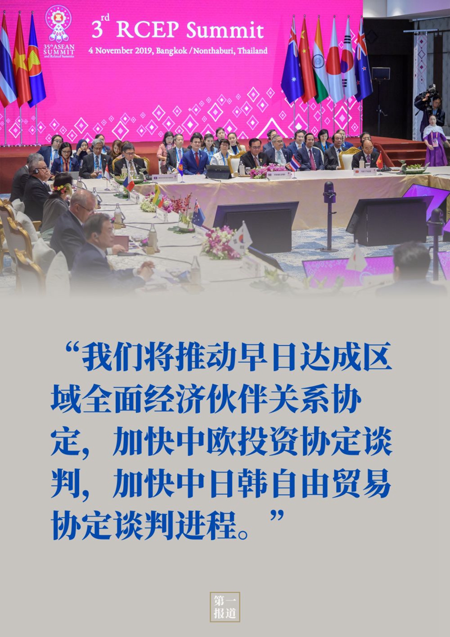 一年前,在二十国集团大阪峰会上,习主席这样宣示:“我们将推动早日达成区域全面经济伙伴关系协定,加快中欧投资协定谈判,加快中日韩自由贸易协定谈判进程。”