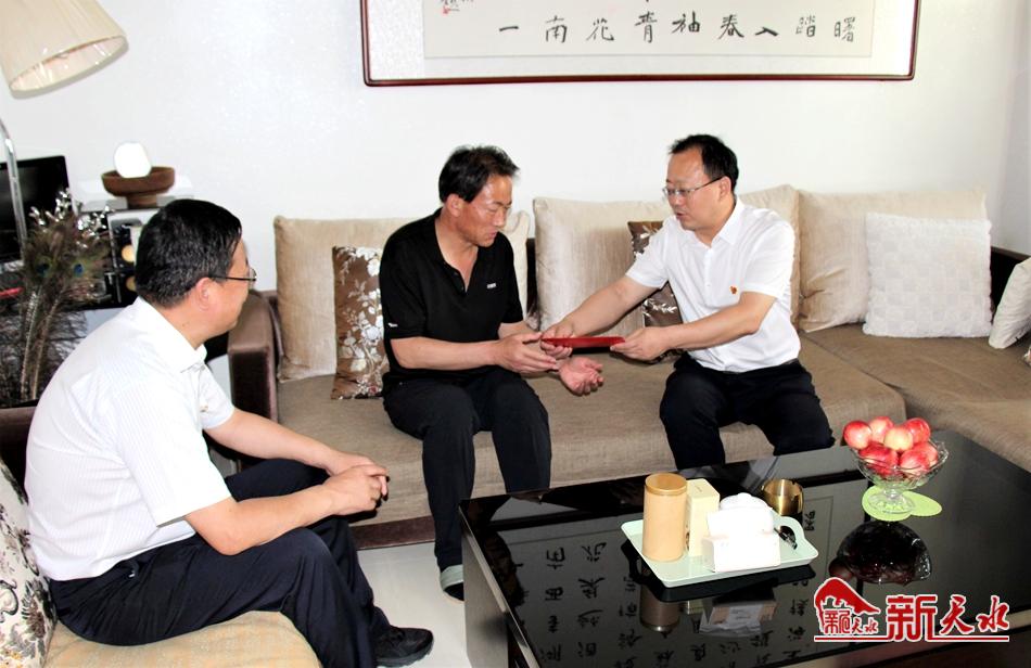 新天水讯 6月30日,在建党99周年来临之际,市委常委、组织部部长贾义翔到秦安县走访慰问优秀党员、老党员和因公牺牲党员干部家属以及部分贫困户,给他们送去了党的关怀和节日的祝福。