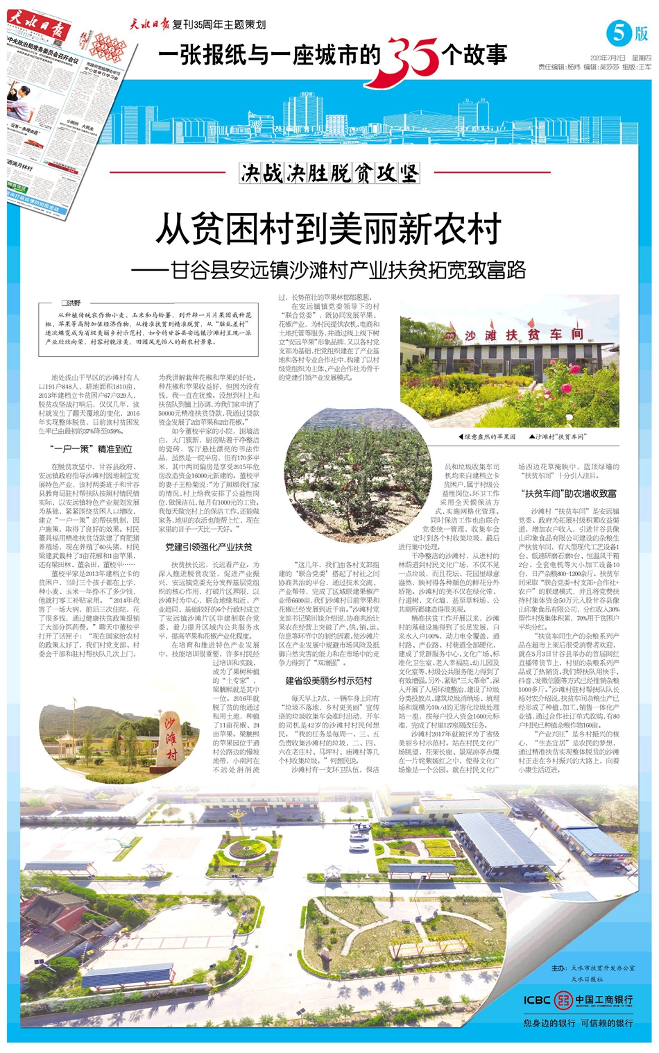2020年是脱贫攻坚决战决胜之年,恰逢《天水日报》复刊35周年。
