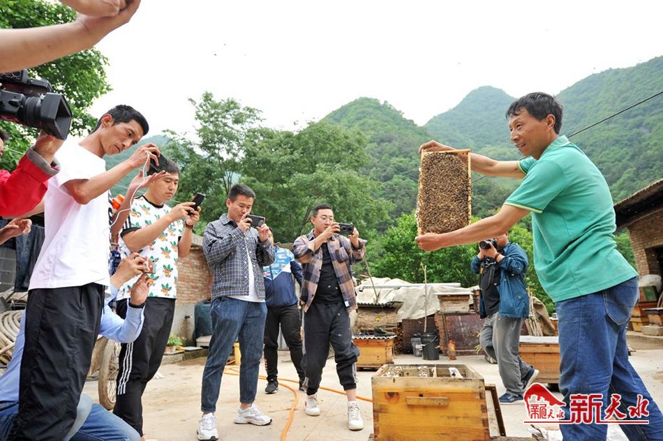 三岔镇秦岭村依靠养蜂脱贫的村民向记者展示中华蜂。