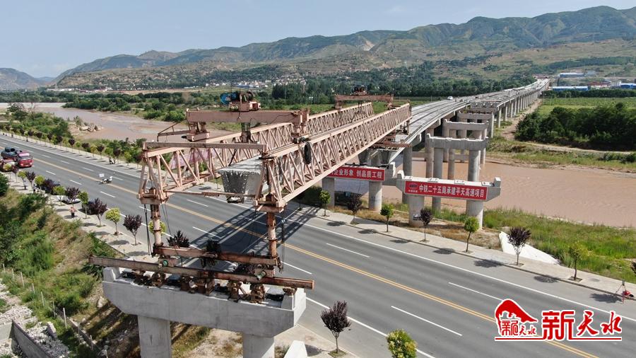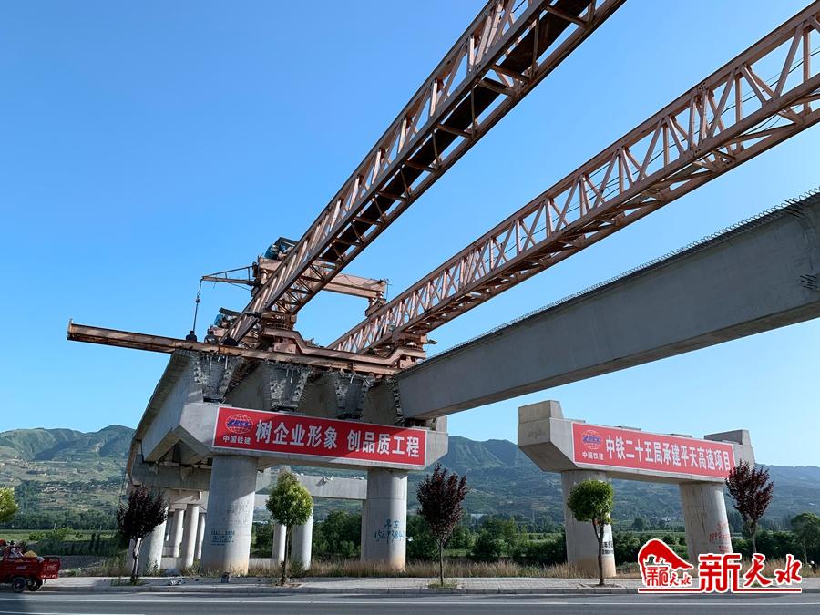 新天水讯【通讯员 马勇 田永强】7月2日下午2时30分,平天高速公路PT14标项目建设现场,渭南特大桥首片上跨麦甘公路箱梁顺利架设完成,标志着渭南特大桥的施工取得重大进展。