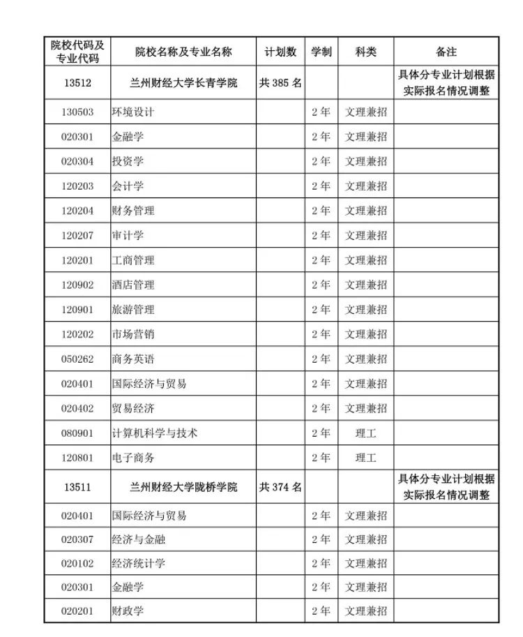 甘肃省普通高校专升本