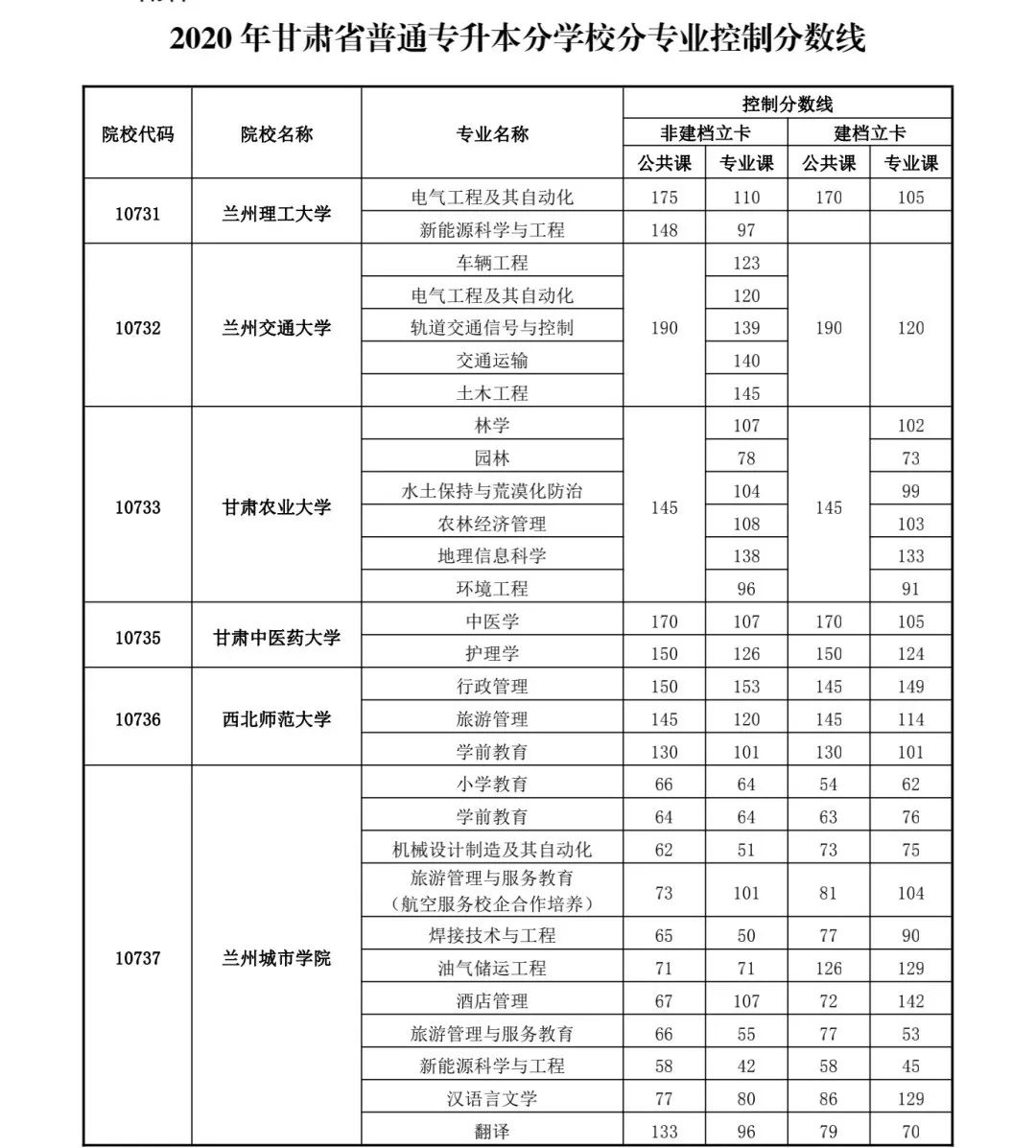 甘肃省教育考试院7月3日公布了2020年甘肃省普通高等学校专升本首次招生录取最低控制分数线。