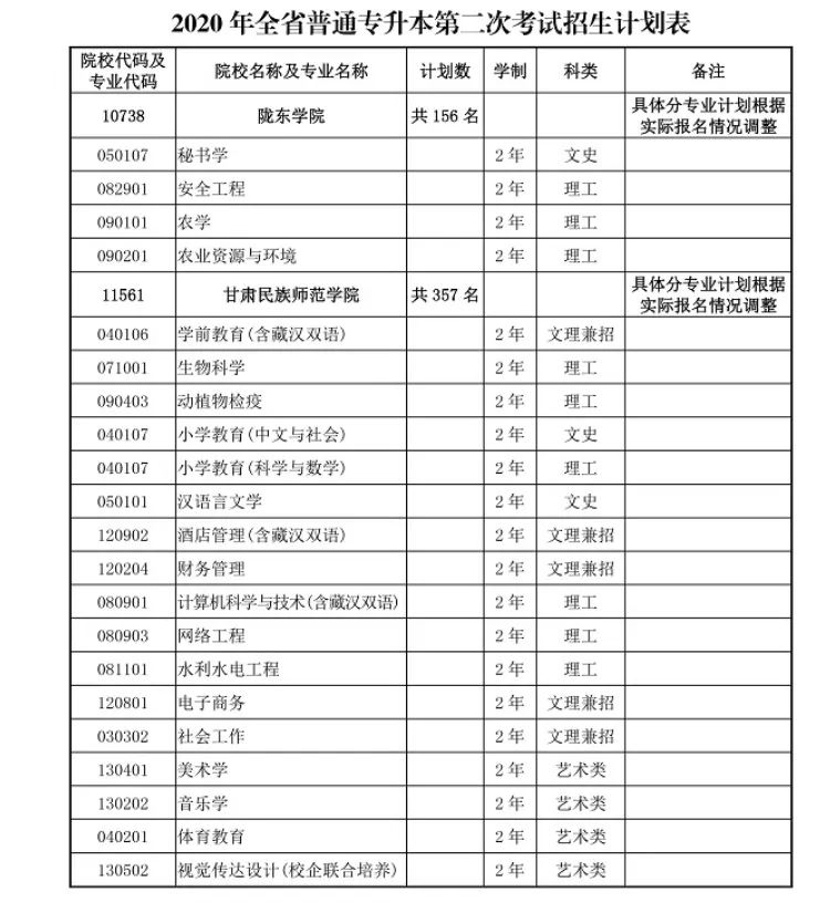 2020年甘肃专升本首次招生录取线公布 第二次考试报名时间确定
