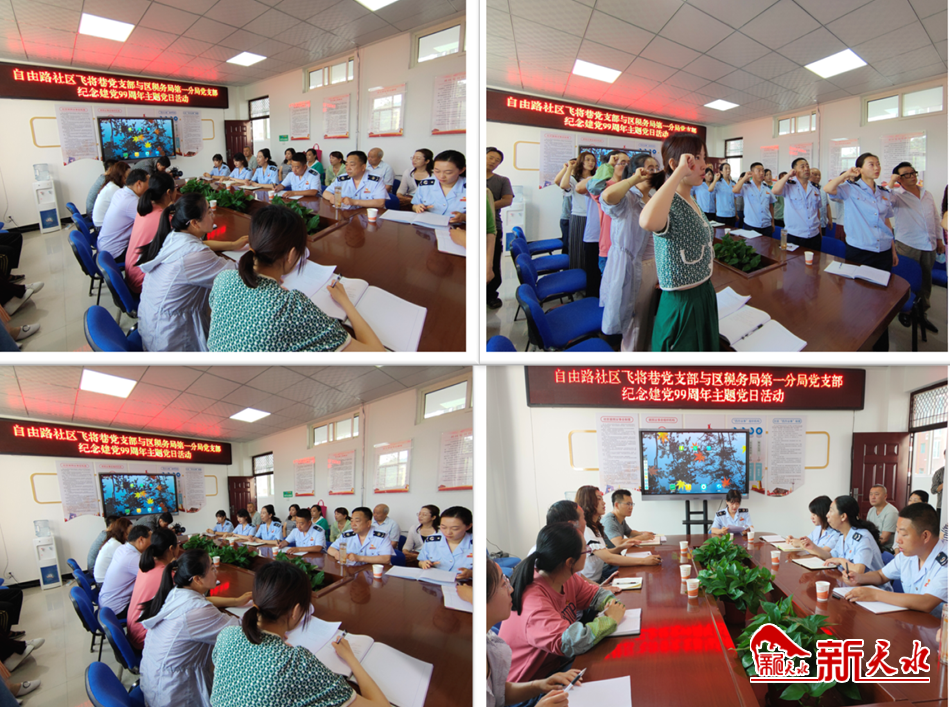 西关街道自由路社区飞将巷党支部与区税务局第一分局党支部开展纪念建党99周年主题党日活动