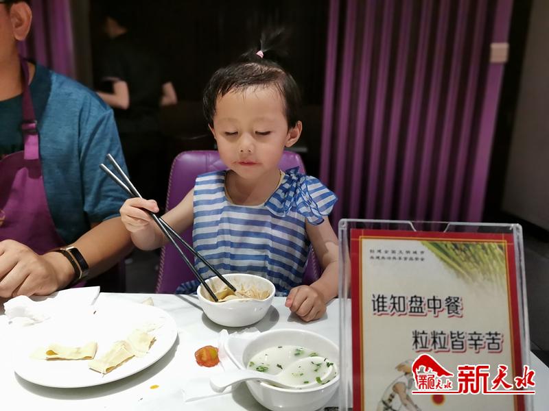 新天水讯【天水日报记者 余碧波】7月5日,在我市某火锅店,一小孩正在吃火锅,孩子眼前“谁知盘中餐粒粒皆辛苦”的牌子醒目地提醒着就餐者不要浪费粮食。近年来,节俭之风吹遍我市各行各业,大家都树立起了光盘行动和勤俭节约的好习惯。