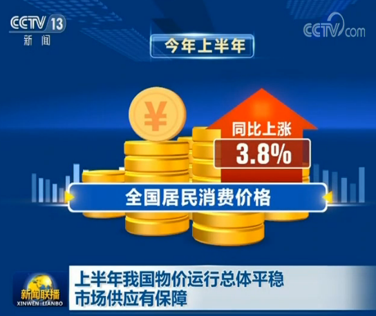 今年上半年,全国居民消费价格CPI比去年同期上涨3.8%,从单月看,6月份同比上涨2.5%,呈现出了前高后低的走势。