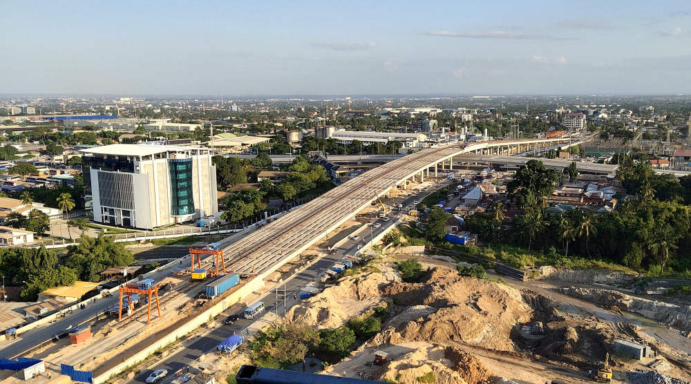 这是2020年5月17日在坦桑尼亚达累斯萨拉姆拍摄的建设中的乌本戈立交桥项目。(新华社发)