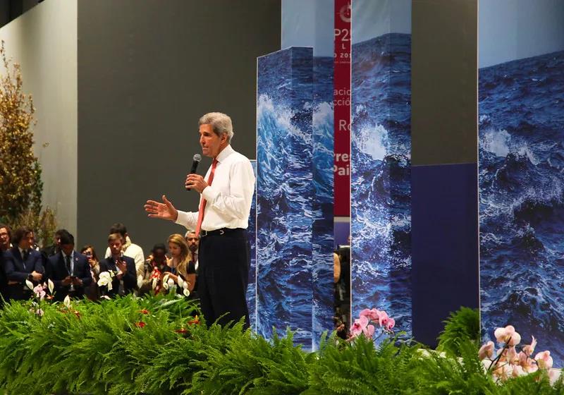 △2019年年底,克里在联合国气候变化大会上发言(图片来源:联合国气候变化大会)