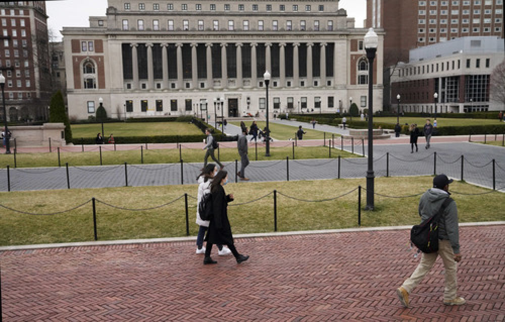 3月10日,人们走在美国纽约哥伦比亚大学校园内。新华社记者王迎摄