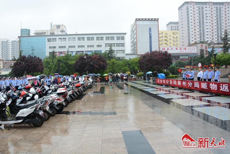 新天水讯【天水晚报记者蔚军平】7月14日,秦州公安分局在市龙城广场举行赃物返还大会,返还今年以来该局在打击侵财犯罪中追缴的赃物,展示打击违法犯罪、维护人民群众利益的决心,加大对打击违法犯罪的宣传力度,提高群众对违法犯罪的预防能力。