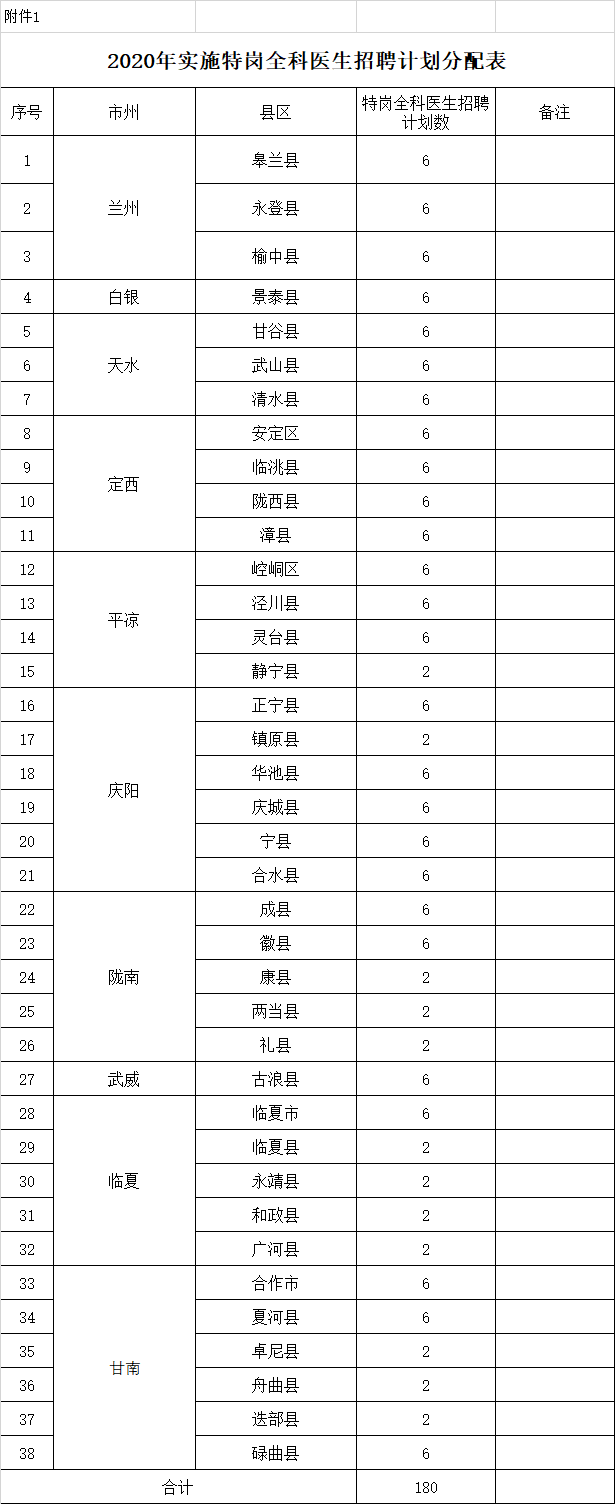 年收入不低于6万元!甘肃为38个贫困县招聘180名特岗全科医生(附分配表)