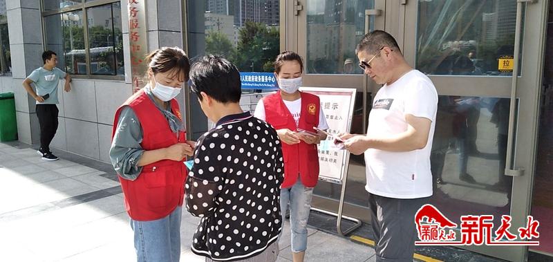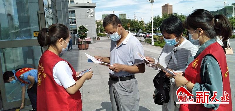 新天水讯 为促进各民族团结一致,社会和谐稳定,深入推动民族团结进步创建工作。7月15日下午,秦州区七里墩街道五里铺社区组织社区干部在天水市政务中心门前开展了民族团结进步宣传活动。