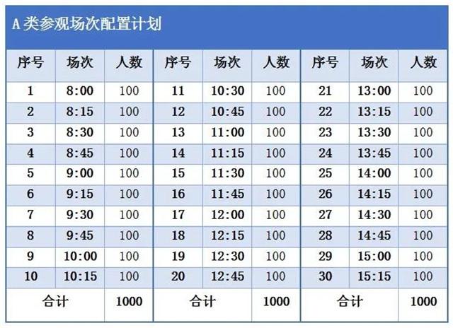 A类票参观场次配置计划