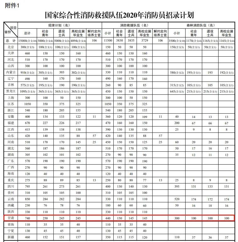 1.国家综合性消防救援队伍2020年消防员招录计划