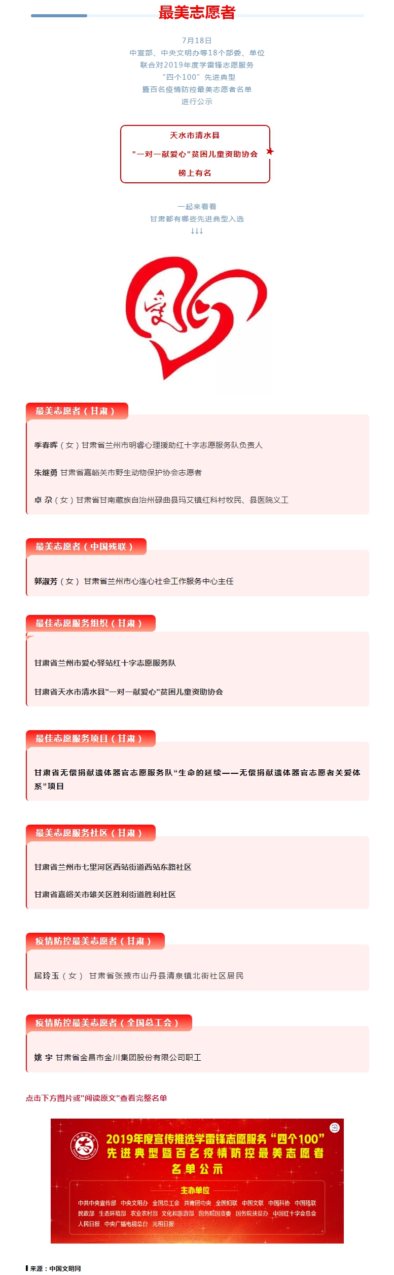 全国志愿服务先进典型名单公示!天水1个集体上榜