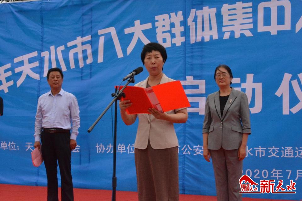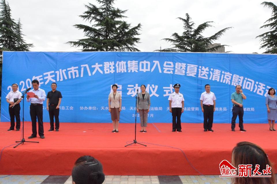 新天水讯【天水日报记者 马哲】7月22日,我市在龙城广场举行全市网约送餐员、家政服务员、快递员、保安员、货运司机等“八大群体”集中入会暨2020年夏送清凉慰问活动启动仪式,并向他们送去了防暑降温物资和用品。市人大常委会副主任、市总工会主席王晓琴,市政协副主席高媛瑾出席启动仪式。