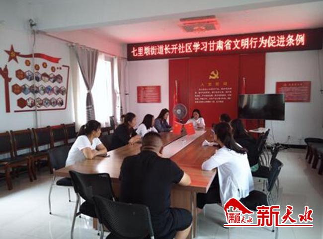 七里墩街道长开社区新时代文明实践站组织学习《甘肃省文明行为促进条例》