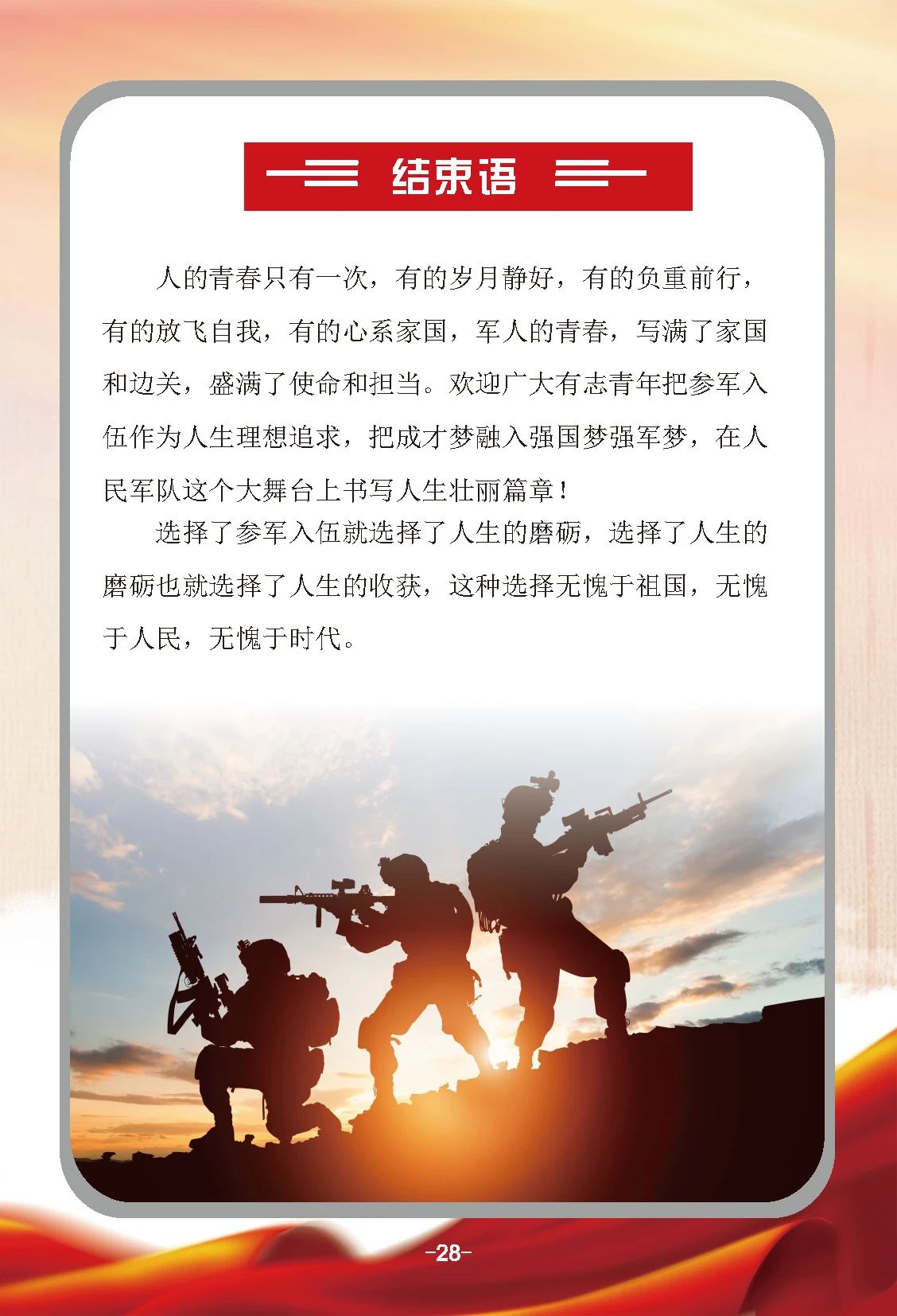 12、莘莘学子携笔从戎,参军报国建功立业。