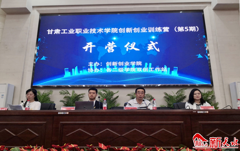 新天水讯 7月20日,甘肃工业职业技术学院2020年创新创业训练营在学校新图书馆五楼报告厅开营。校长曹爱明出席,校团委书记黄晓慧、创新创业学院常务副院长李少华、各二级学院双创工作站站长和师生代表参加训练营开营仪式。