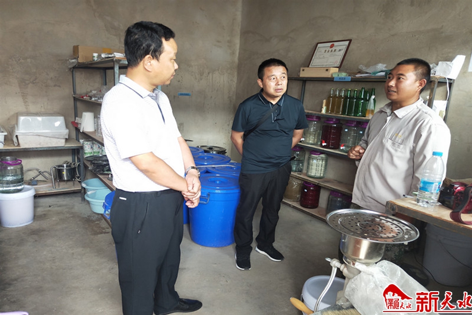 纪委书记、监察专员潘文生一行到达村部后,对帮扶工作队的工作开展情况进行了督查。在学校驻村干部的陪同下,深入到帮扶困难群众家中,仔细查看他们居住条件,询问他们的身体状况、家庭生活、经济收入来源、扶贫政策的落实情况等,通过与帮扶户深入的交流,详细的了解,为普查工作及时查缺补漏。走访结束后,潘文生一行参观了学校帮扶资金筹建的养殖合作社和创业青年李强强的腾顺农业科技公司酿酒坊。