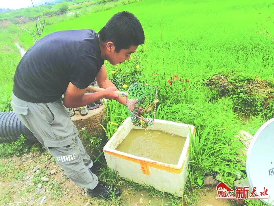 于是,毛韶强在下湾村的西河岸,整理出了100多亩荒滩地,50户农户以资金、土地、技术等形式入股,投资40多万元,建设稻鱼共生,休闲垂钓的生态农业园。而作为学过环境科学专业的毛韶强自然就成了技术员,“稻田+鱼+青蛙+泥鳅”的养殖方式成了下湾农业发展的一种新尝试。
