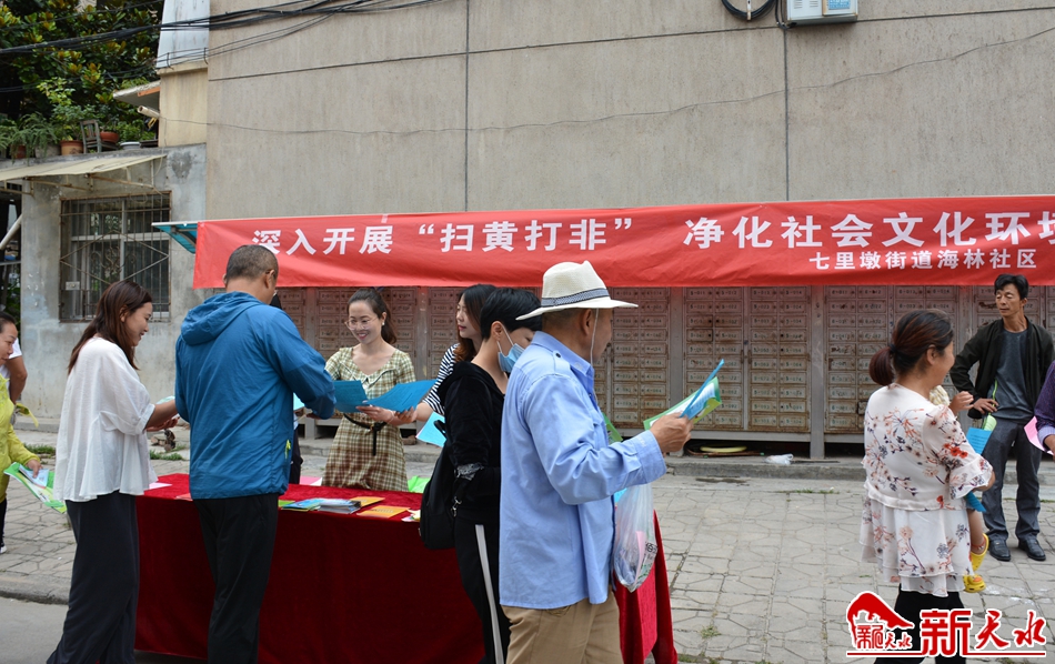 新天水讯 为进一步净化社区人居环境,构建文明和谐家园,2020年7月28日,七里墩街道海林社区组织志愿者20余人在海林南厂阳光驿站开展“扫黄打非”宣传活动。