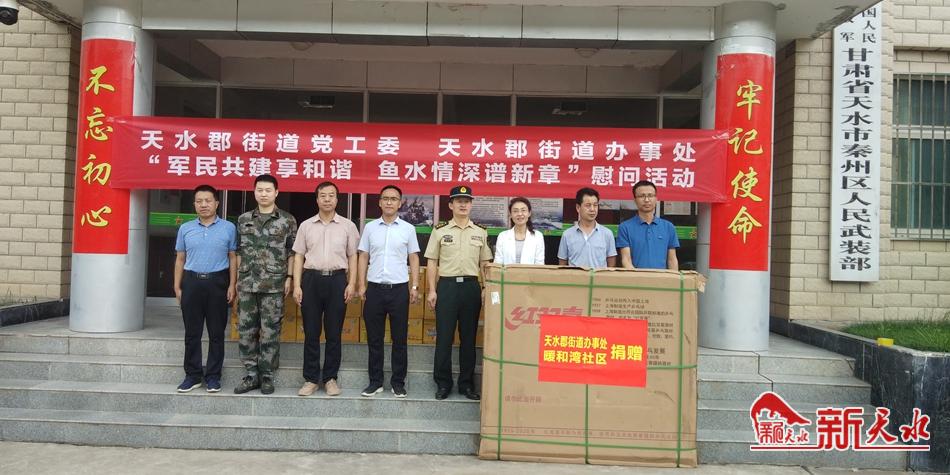 新天水讯 为纪念中国人民解放军建军93周年,在“八·一”建军节来临之际, 进一步深入开展双拥工作,落实各项优抚政策,巩固新时代的军民关系。7月30日下午,天水郡街道办事处、暖和湾社区在秦州区人民武装部开展“军民共建享和谐、鱼水情深谱新章”为主题的慰问活动。
