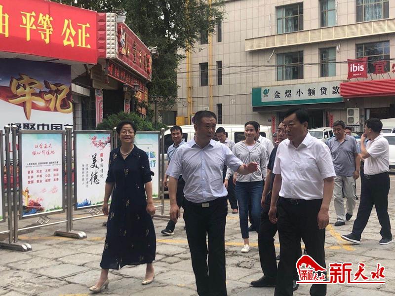 新天水讯 8月4日上午,市人大常委会主任蒋晓强带领市直相关部门负责人一行到大城街道进步巷社区调研全国文明城市创建工作。市委常委、区委书记雷鸣、区人大常委会主任宋丕林一同调研。